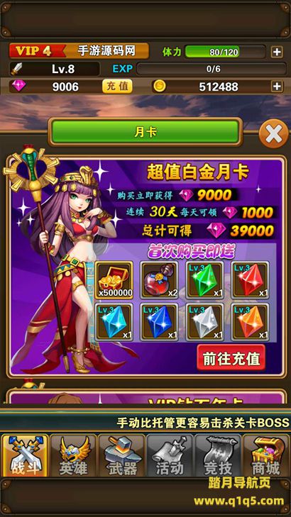 数据库:【projq_dbkd1】选【accsave表】找到viplevel 把这里改成15 就是满级VIP15级