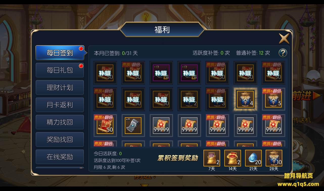3.上线精力180点,购买月卡后1680点