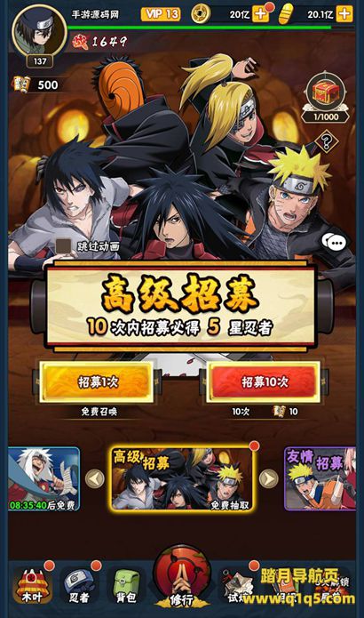【火影忍者荣耀之战】火爆动漫改编而成稀有卡牌回合手游-4月15日全新打包Linux服务端源码视频架设教程-完整GM后台工具!