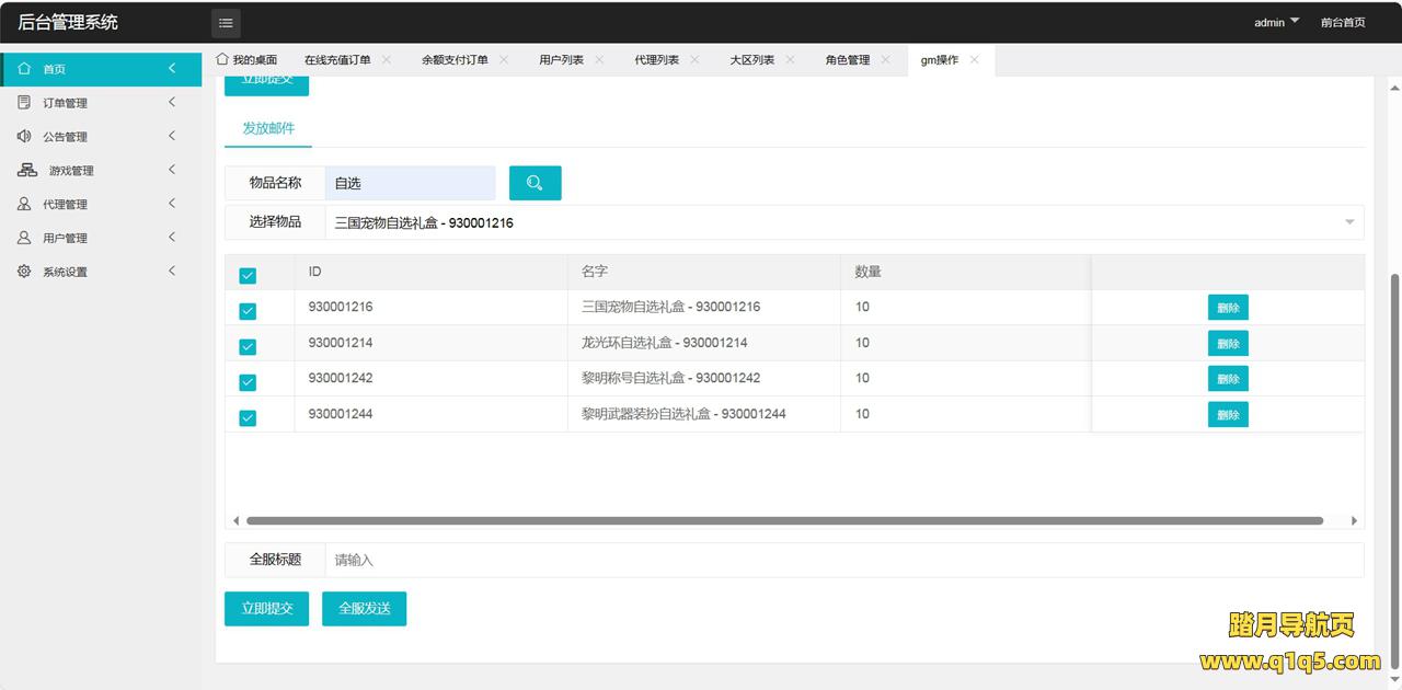 GM授权物品后台: