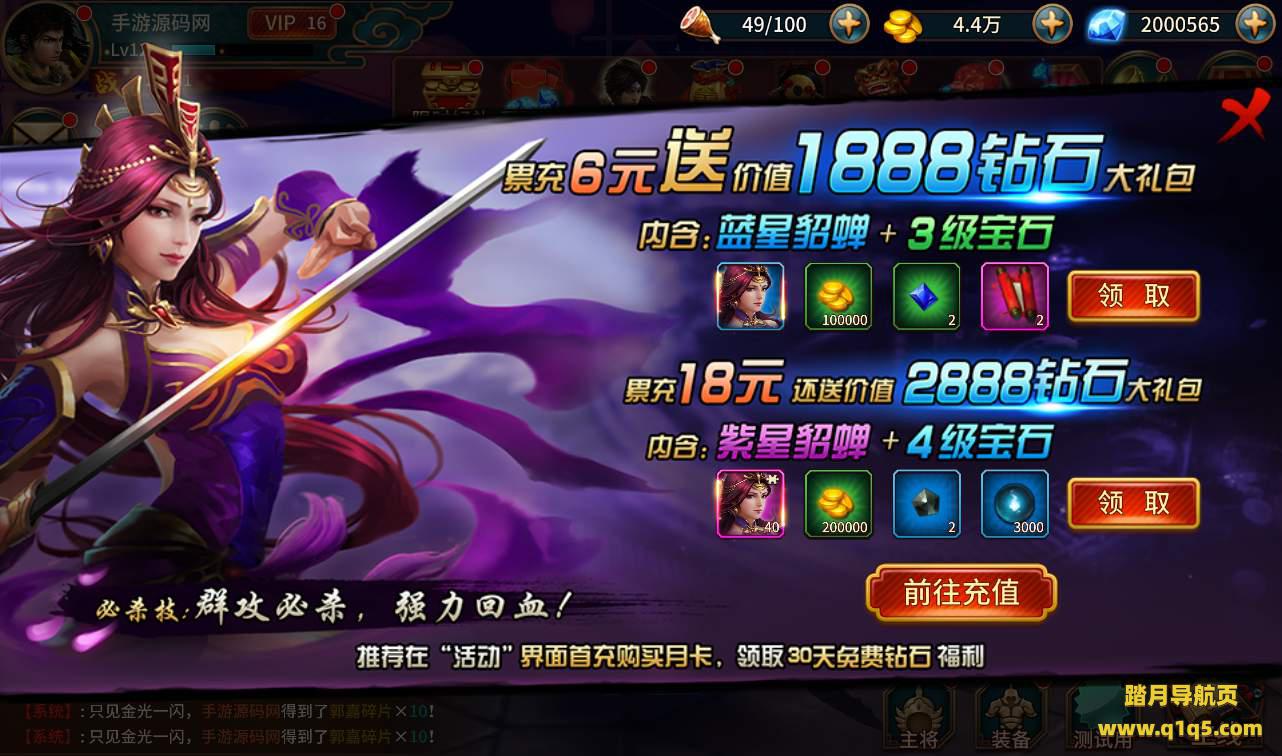 【真三国无双】之极无双三国题材角色扮演类动作手游9月18日全新整理Linux手工服务端+完善GM后台工具!