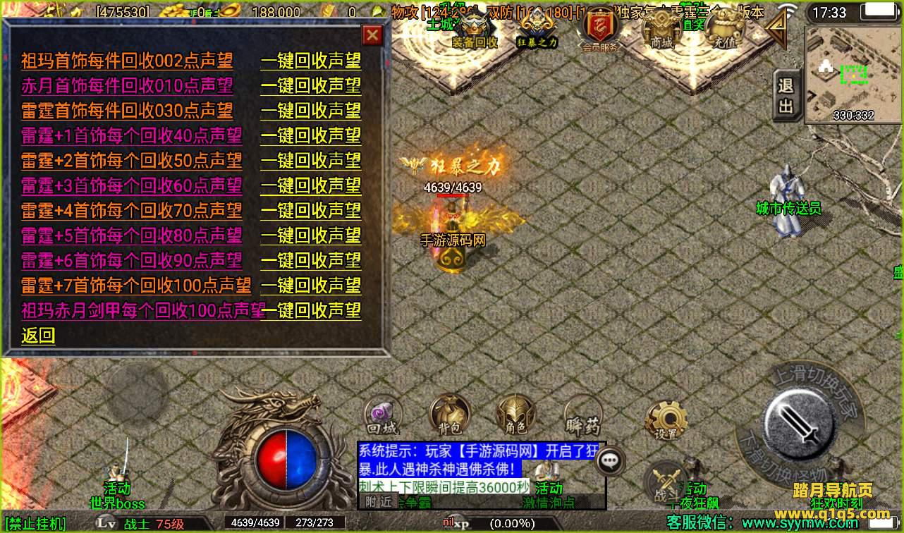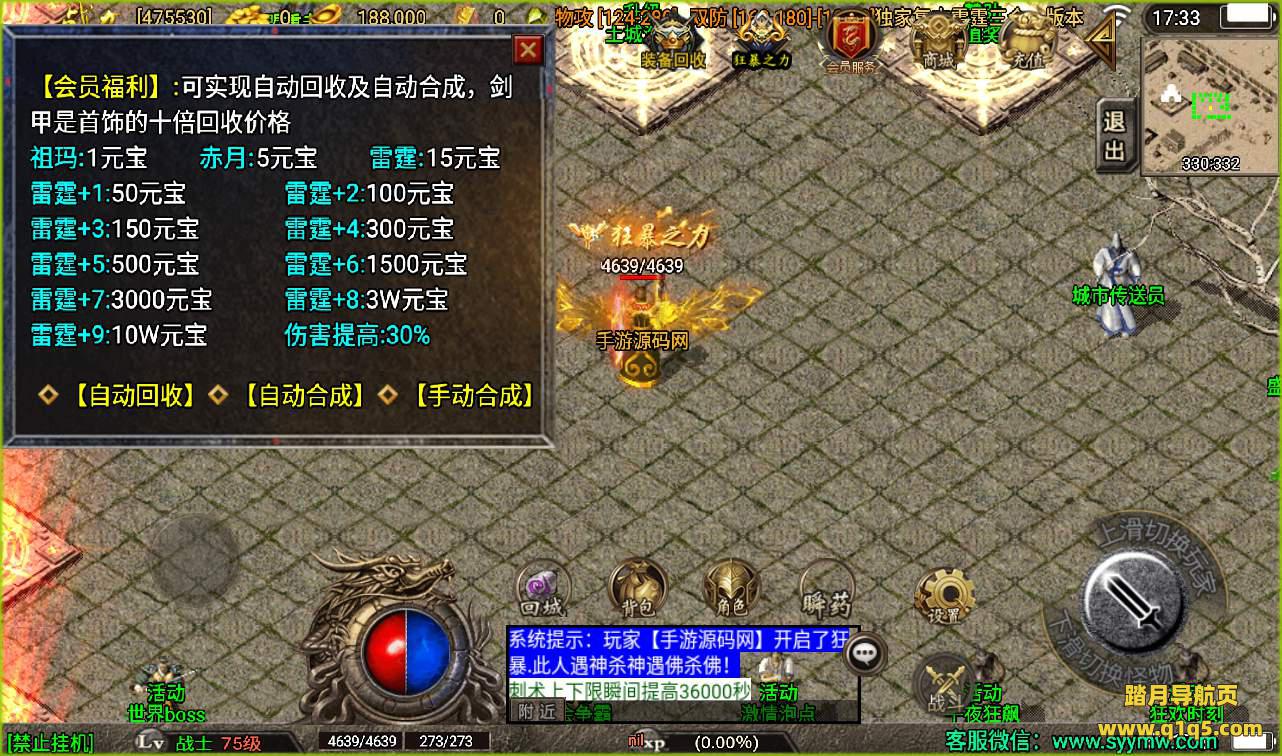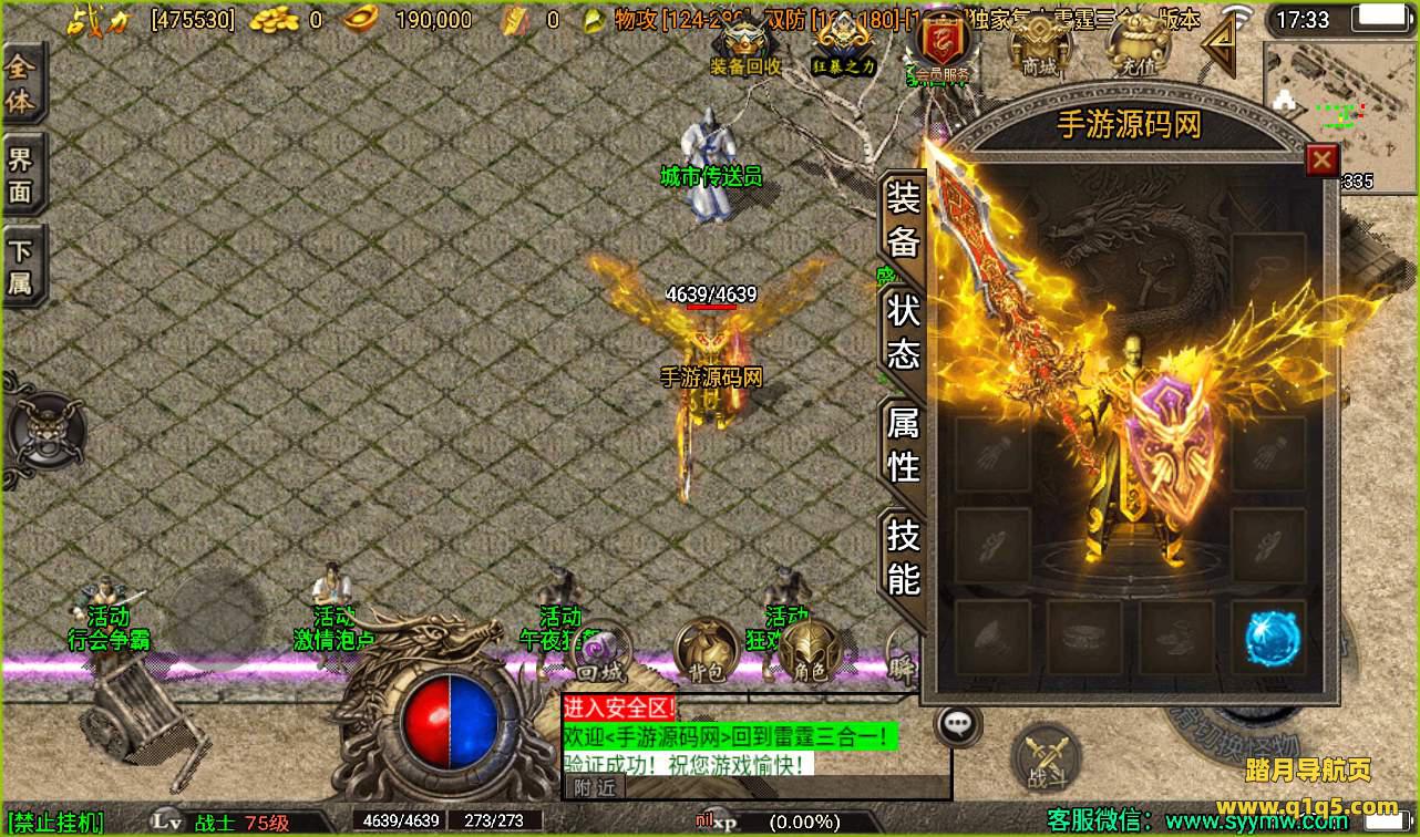 【盛世火龙之雷霆三合一白猪版】战神引擎传奇手游8月30附带超清视频教程全新整理Win半手工服务端+转生+多大陆+官职+GM完善充值后台工具!