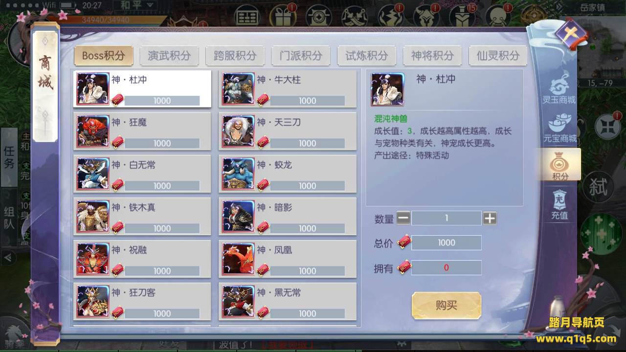 15.更新boss积分商店更新上架所有魔宠物,月卡,648充值等等